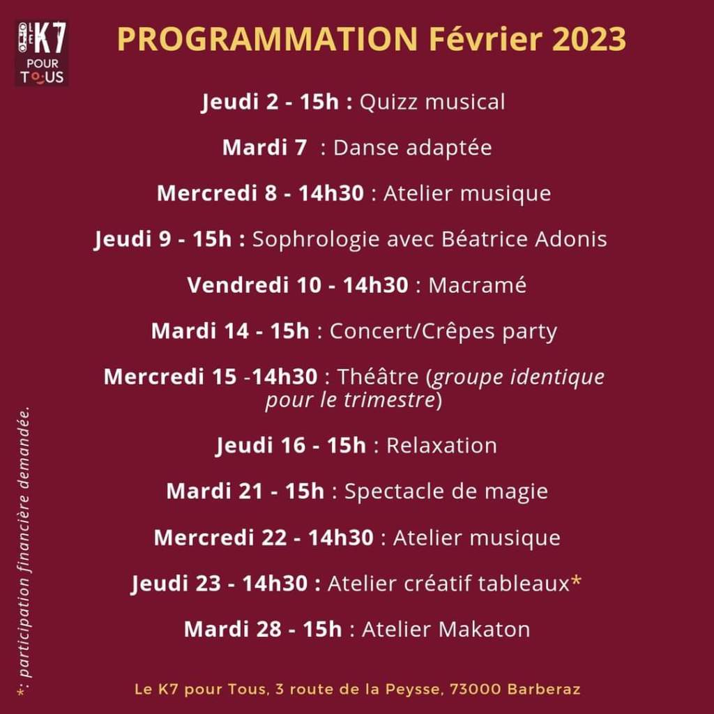 A noter : le programme peut évoluer. Suivez notre page Facebook pour connaitre les éventuelles modification.