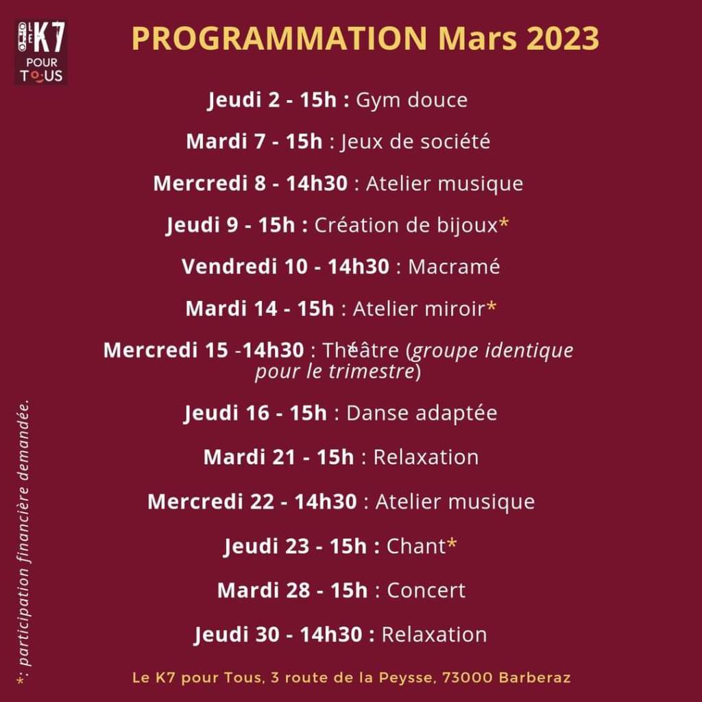 L’équipe de bénévoles du K7 pour TOUS vous propose une parenthèse de vie dans ce lieu atypique et accueillant où vous pourrez boire un verre, participer à des ateliers créatifs, assister à des concerts, des conférences sur le handicap, la parentalité…