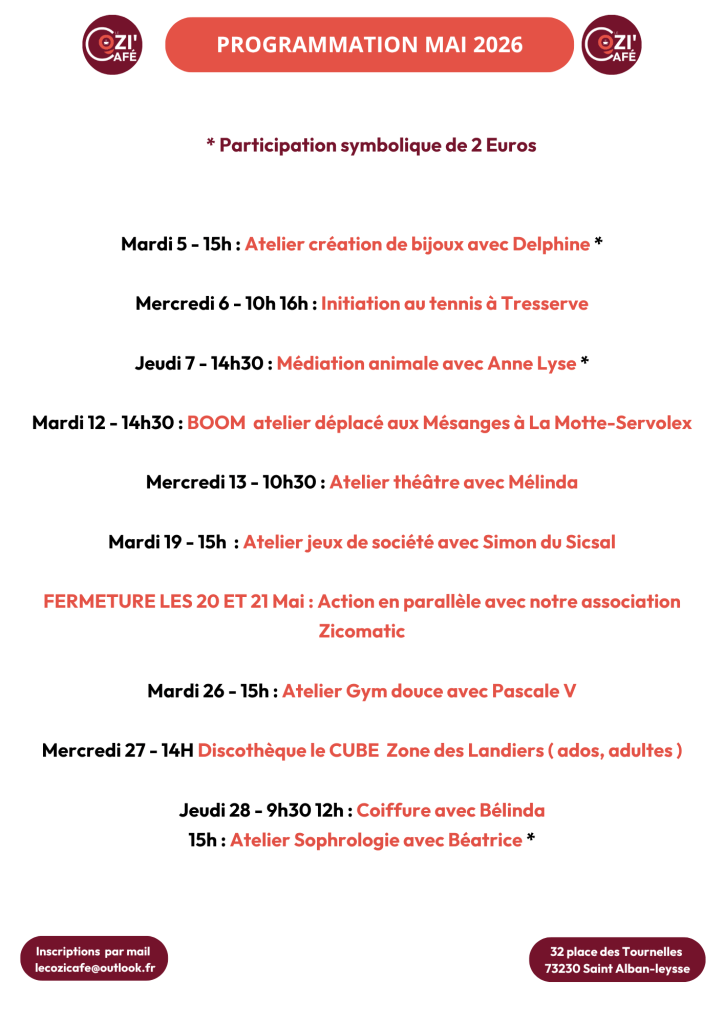 L’association Zicomatic a ouvert son café inclusif. Un lieu de rencontres, d’activités inclusives ouvert à TOUS. Retrouvez nous dans notre nouveau lieu au 32 place des Tournelles à Saint Alban-Leysse !