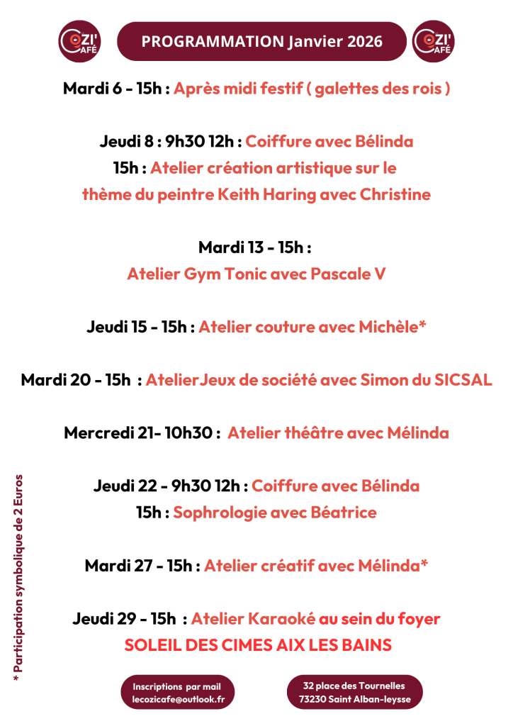 Une participation financière de 2€ à 5€ peut-être demandée selon l’atelier (atelier avec * sur le programme).